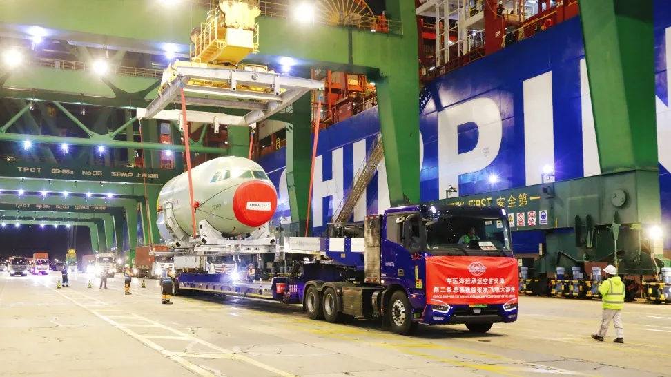 作(zuo)为空客亚洲(zhou)(zhou)总装线信赖(lai)17年的唯一(yi)物流(liu)伙伴(ban),中(zhong)远(yuan)(yuan)(yuan)海(hai)运(yun)(yun)(yun)(yun)此次运(yun)(yun)(yun)(yun)用了“航(hang)(hang)运(yun)(yun)(yun)(yun)+港口+物流(liu)”一(yi)体化(hua)服务,并提(ti)供(gong)了全(quan)球首创(chuang)的集装箱(xiang)班轮(lun)运(yun)(yun)(yun)(yun)输方(fang)案。9月4日-10月20日间(jian)这些珍贵的“飞机(ji)拼图(tu)”在(zai)完(wan)成(cheng)欧洲(zhou)(zhou)段驳船运(yun)(yun)(yun)(yun)输后(hou),从德国(guo)汉堡港启程,由(you)“中(zhong)远(yuan)(yuan)(yuan)海(hai)运(yun)(yun)(yun)(yun)白羊座”轮(lun)护航(hang)(hang)抵达天津,无缝衔接完(wan)成(cheng)接卸(xie)与陆运(yun)(yun)(yun)(yun)。由(you)中(zhong)远(yuan)(yuan)(yuan)海(hai)运(yun)(yun)(yun)(yun)物流(liu)供(gong)应链、中(zhong)远(yuan)(yuan)(yuan)海(hai)控/集运(yun)(yun)(yun)(yun)、中(zhong)远(yuan)(yuan)(yuan)海(hai)运(yun)(yun)(yun)(yun)欧洲(zhou)(zhou)公司(si)组(zu)成(cheng)的“联(lian)合护航(hang)(hang)队”高效协同关联(lian)方(fang)、精准把(ba)控流(liu)程细节,确保了运(yun)(yun)(yun)(yun)输全(quan)程的顺畅与安(an)全(quan)。